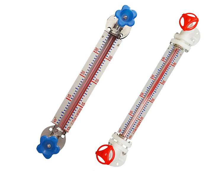 玻璃板、玻璃管液面計為直觀液位測量儀表,用來直接或間接地指示各種塔、罐、槽、箱等容器的液面位置(油、水、酸、堿、鹽等各種介質(zhì))儀表兩端各裝有一個針型閥,當玻璃管發(fā)生意外事故而破碎時,針型閥在容器壓力作用下自動關(guān)閉,以防止容器內(nèi)介質(zhì)繼續(xù)外流。