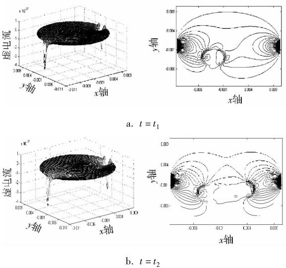 虛電流決定著一體式電磁流量計(jì)測(cè)量區(qū)域權(quán)值函數(shù)的分布情況,也就影響著一體式電磁流量計(jì)內(nèi)部敏感場(chǎng)分布情況。