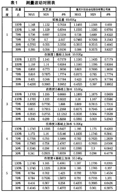 在造紙行業(yè)有大量的紙漿液體需要測量,就會(huì)用到大量的流量測量儀表,目前在造紙行業(yè)中用于測量流量的儀表,主要有電磁流量計(jì)等儀表,因?yàn)?a href="http://www.kmfangguan.com">電磁流量計(jì)具有非常強(qiáng)的優(yōu)點(diǎn),所以非常適合在紙漿的流量測量中使用。在紙漿實(shí)驗(yàn)裝置上,使用串聯(lián)在同一管道上該公司生產(chǎn)的防爆型電磁流量計(jì)價(jià)格與日本東芝的防爆型電磁流量計(jì)價(jià)格測量不同濃度和流量的紙漿漿液,以驗(yàn)證其可靠性。波動(dòng)率對比實(shí)驗(yàn)結(jié)果表明,該產(chǎn)品用于紙漿漿液測量時(shí)能夠很好地克服漿液噪聲。在滿流量測量時(shí),上述實(shí)驗(yàn)中各濃度下漿液測量穩(wěn)態(tài)波動(dòng)率均在1%以內(nèi);其它流量下測量時(shí),由于實(shí)驗(yàn)系統(tǒng)主管道上游分流控制流速不穩(wěn),進(jìn)而導(dǎo)致測量穩(wěn)態(tài)波動(dòng)率相對較大,甚至達(dá)到近7‰ 但由表1可知,在各種漿液濃度及各流量點(diǎn)下,凱銘儀表有限公司生產(chǎn)的防爆型電磁流量計(jì)價(jià)格的穩(wěn)態(tài)波動(dòng)率始終與日本東芝防爆型電磁流量計(jì)價(jià)格的測量結(jié)果一致,從而表明實(shí)驗(yàn)系統(tǒng)的測量結(jié)果能準(zhǔn)確反映實(shí)際漿液流量大小。 說明:MAX、MIN分別表示該組數(shù)據(jù)測得流速的的*大值和*小值,單位m/s。