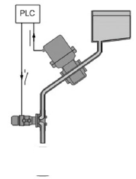 在灌裝系統(tǒng)中用到快速切斷閥(定量閥)來(lái)控制灌裝的啟停。快速切斷閥的控制原理:當(dāng)電磁閥接收到PLC的輸出信號(hào)(由PLC采集灌裝流量計(jì)的脈沖信號(hào)后處理的輸出信號(hào))時(shí)開(kāi)始動(dòng)作,通過(guò)執(zhí)行機(jī)構(gòu)帶動(dòng)閥桿和閥芯向上運(yùn)動(dòng),閥芯和閥座分開(kāi),流體通過(guò)閥座進(jìn)入灌裝管道,開(kāi)始灌裝,當(dāng)電磁閥接收到PLC輸出信號(hào)關(guān)閉閥門時(shí),閥桿向下運(yùn)動(dòng),帶動(dòng)閥芯向下運(yùn)動(dòng),使閥芯和閥座接觸,從而切斷流體達(dá)到結(jié)束灌裝。本應(yīng)用中控制閥的閥桿在管道中,流體從上向下流經(jīng)整個(gè)閥體,閥桿的動(dòng)作行程分兩級(jí),對(duì)應(yīng)于小流量和較大流量。