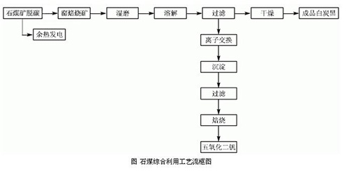 本項(xiàng)目為石煤綜合利用的項(xiàng)目。現(xiàn)有提釩工藝產(chǎn)生大量廢渣。其主要成分為二氧化硅,但其中夾帶有大量的釩資源,釩資源利用率低,同時(shí),該廢渣中堿含量較高,如將廢渣隨意堆放,易造成環(huán)境污染。本項(xiàng)目*大特點(diǎn)在于利用現(xiàn)有提釩工藝中的提釩二次渣作為制備沉淀法白炭黑的主要原料,將廢渣中的硅資源得到充分利用。為企業(yè)創(chuàng)造了新的經(jīng)濟(jì)增長(zhǎng)點(diǎn),同時(shí),解決了現(xiàn)有提釩生產(chǎn)中造成的釩資源浪費(fèi)和環(huán)境污染問(wèn)題,此外,該項(xiàng)目利用現(xiàn)有提釩生產(chǎn)線(xiàn)脫碳工序中產(chǎn)生的余熱作為加熱熱源,取代了傳統(tǒng)工藝以煙煤為主要燃料的方法,即對(duì)生產(chǎn)中產(chǎn)生的余熱得到了有效合理的利用,又進(jìn)一步降低了產(chǎn)生的燃料成本,達(dá)到了節(jié)能減排,資源綜合利用的目的,工藝流程框圖如下。