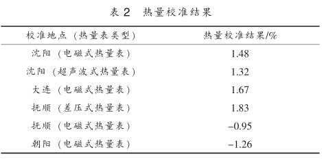 經(jīng)過一個(gè)采暖期的現(xiàn)場校準(zhǔn), 對我省沈陽、 大連、撫順、 朝陽的不同類型的熱量儀表的熱量校準(zhǔn)結(jié)果進(jìn)行了匯總, 如表 2 所示。