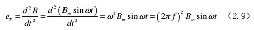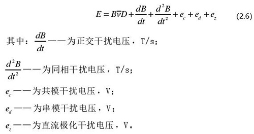 從上圖 2.5 中可以觀察到兩個(gè)電*、勵(lì)磁線圈、轉(zhuǎn)換器內(nèi)阻之間形成了一個(gè)閉合回路,將此回路稱之為初級(jí)繞組,從理論上進(jìn)行分析,磁力線 B 應(yīng)當(dāng)平行于勵(lì)磁線圈所產(chǎn)生的磁感應(yīng)線,但在實(shí)際的應(yīng)用過(guò)程中由于工藝差異,因此無(wú)法達(dá)到理想狀態(tài),會(huì)產(chǎn)生磁力線穿過(guò)勵(lì)磁線圈磁感應(yīng)線的情況,此時(shí)將會(huì)產(chǎn)生相應(yīng)的感應(yīng)電動(dòng)勢(shì),將此部分感應(yīng)電動(dòng)勢(shì)稱為變壓器效應(yīng)。此效應(yīng)同樣滿足于楞次定律,利用楞次定律進(jìn)行計(jì)算可得如下電動(dòng)勢(shì):