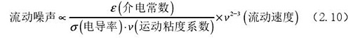 流動(dòng)噪聲主要出現(xiàn)在低電導(dǎo)率流體的檢測(cè)中,由輸出端輸出的直流*化電壓時(shí)常出現(xiàn)左右擺動(dòng)的現(xiàn)象,而此種擺動(dòng)的電壓被稱為流動(dòng)噪聲。上式(2.5)中可以觀察了解到流體電導(dǎo)率和流動(dòng)噪聲呈現(xiàn)出負(fù)相關(guān)關(guān)系,由此可以了解到在進(jìn)行低電導(dǎo)率的計(jì)算中需要重點(diǎn)考慮位移電流。