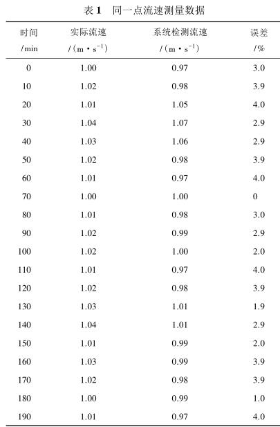 由表 2 測量數(shù)據(jù)可知,系統(tǒng)在測量低流速液體時(流速小于 1 m/s)誤差較大,達(dá)到 5%,當(dāng)待測液體的流速增大時(大于 1.4 m/s),誤差逐漸減小,基本維持在 3%以內(nèi)。由此可見系統(tǒng)具有較高的檢測精度,尤其是當(dāng)管道中的液體流速較高時,系統(tǒng)的檢測誤差不超過 3%,達(dá)到了設(shè)計預(yù)期。