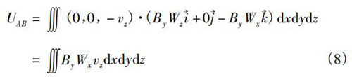 式中V為管道法蘭式電磁流量計傳感器測量空間;W→為權(quán)函數(shù)。在直角坐標(biāo)系(x,y,z)中,式(5)可以轉(zhuǎn)換為