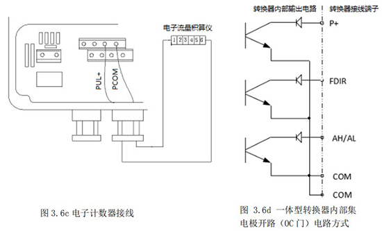 頻率(脈沖)、上下限報警、流向標示等輸出均為集電*開路的電平輸出信號。