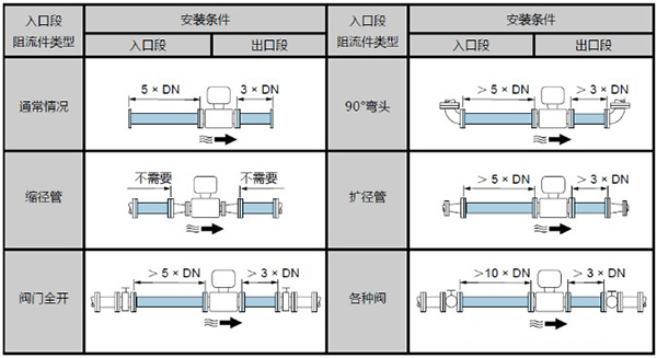 管路必須完全充滿液體。保證管路始終充滿液體至關(guān)重要,否則流量顯示會(huì)受到影響,而且還會(huì)出現(xiàn)測(cè)量錯(cuò)誤。管路結(jié)構(gòu)的設(shè)計(jì)必須要保證測(cè)流管始終充滿流體。當(dāng)流體有分流或含有固體顆粒沉淀物時(shí),建議使用垂直安裝。但采用垂直安裝時(shí),要遵循流體從下到上的走向,以保證管路充滿流體。