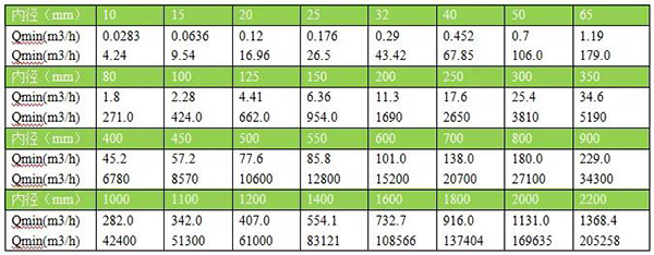 當介質(zhì)流速達不到要求時,應當選用較小口徑這時應使用異徑錐管或修改部分管道,使其與徑,但前后直管段至少須滿足:前直管段≥管道≥2DN(DN 為管徑)