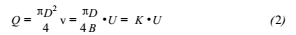 式(1)說明,導(dǎo)體在磁場內(nèi)作切割磁力線運動,導(dǎo)體兩端產(chǎn)生的感應(yīng)電動勢的大小與磁感應(yīng)強度B成正比,與導(dǎo)體的長度D成正比,與導(dǎo)體運動的速度v成正比。由式(2)可知液體的體積流量與感應(yīng)電動勢成正比,這就是潛水式電磁流量計的設(shè)計原理。